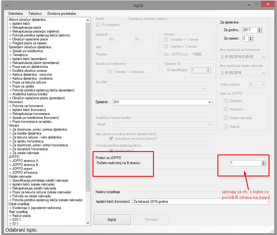 Plaća - U programu plaće omogućeno je da se prilikom kreiranja JOPPD obrasca s oznakom izvješća 2 (DOPUNA) može upisati rb. s kojim će početi prvi zapis na B strani JOPPD obrasca.