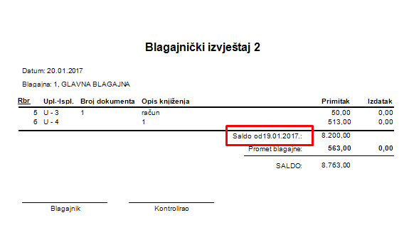 Dorađen je blagajnički izvještaj i sada na ispisu vidljiv Saldo od prethodnog datuma kada je knjižena blagajna. Prijašnji tekst Početno stanje zamijenjen je tekstom Saldo od.
