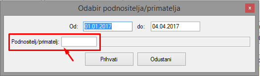 Izrađen novi izvještaj "Predmeti / akti prema podnositelju/primatelju. Potrebno je ići na Ispisi / predmeti / akti prema podnositelju / primatelju. Program nudi mogućnost ispisa akata prema zadanom podnositelju ili primatelju.