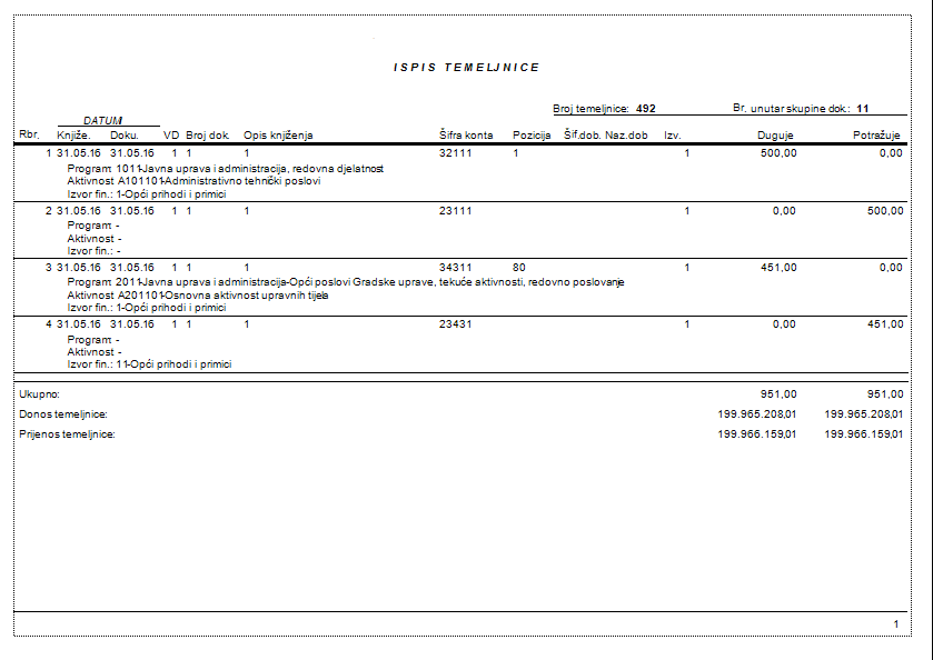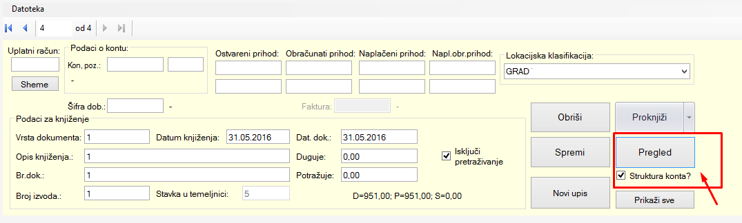 U Proračunu u glavnom dnevniku dodana je mogućnost ispisa strukture konta. Nakon što su unesene stavke unutar temeljnice u gl. dnevniku stavi se kvačica na Struktura konta i prilikom pregleda te temeljnice program ispiše cijelu strukturu konta. Ispišu se: program, aktivnost, izvor financiranja te pozicija unutar kojeg se nalaze konta koja se nalaze na temeljnici.
