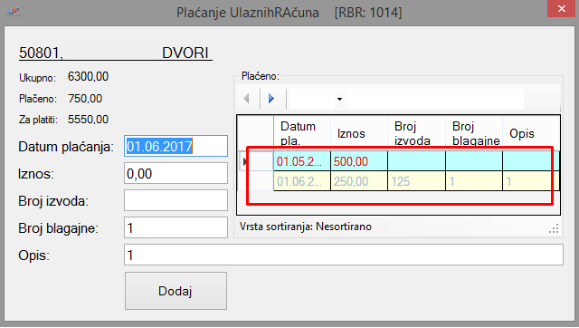 Prilikom kreiranja datoteke za banku dodana je mogućnost da kod odabira ulaznog računa koji se stavlja na plaćanje, a djelomično je plaćen, program uzima samo ostatak iznosa koji je ostao neplaćeni, a ne puni iznos ulaznog računa.
