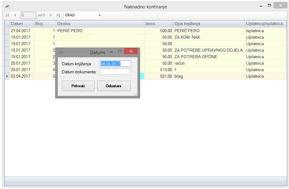 Na blagajni je dorađeno da prilikom prijenosa isplatnice / uplatnice u proračun program pita za koje razdoblje se radi prijenos. Nakon što se odabere razoblje za koje se radi prijenos, u proračun budu prenesene samo uplatnice / isplatnice koje su knjižene unutar tog razdoblja, a ne sve koje su neprenesene.