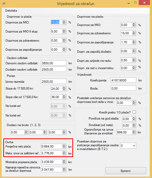 Da bi se isplata zaštićenog dijela plaće mogla ispravno isplatiti potrebno je u programu podesiti vrijednosti za obračun.