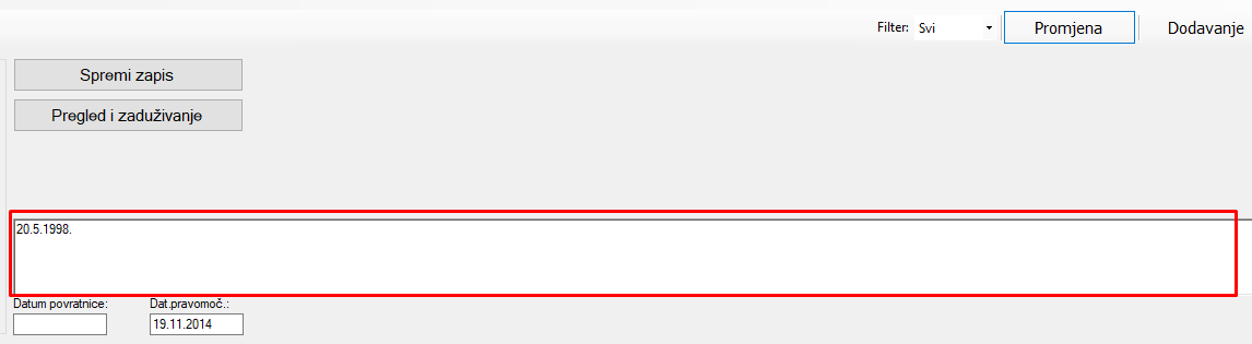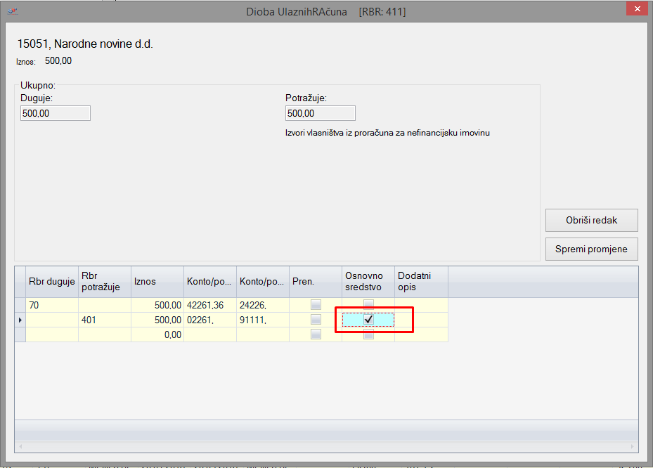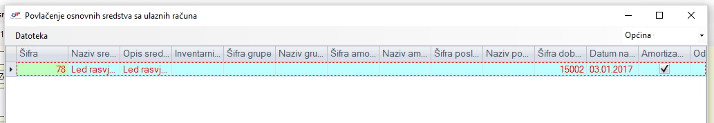 Obriši zapis - Ako se određeno sredstvo želi obrisati s popisa potrebno ga je prethodno označiti i kliknuti na Obriši zapis i to OS bude izbrisano s popisa.