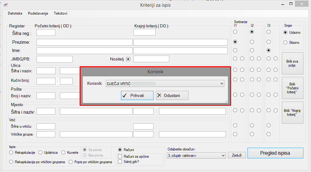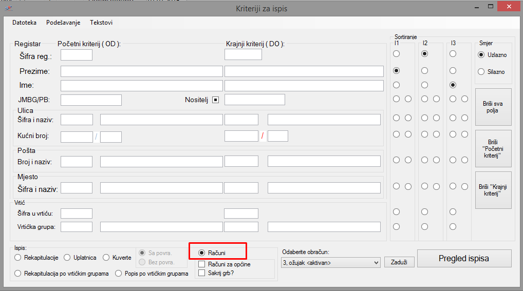 U program Vrtić omogućeno je kreiranje i ispis računa za roditelje. Do sada je bila opcija samo za ispis uplatnica, a sada je omogućeno i kreiranje i ispis računa. Potrebno je kliknuti na opciju Računi i Pregled ispisa.