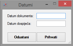 Pojavi se prozor u koji je potrebno napisati Datum dokumenta i Datum dospijeća.