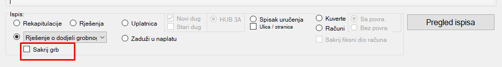 Na ispisu rješenja postoji dodatna mogućost da grb bude vidljiv ili sakriven.