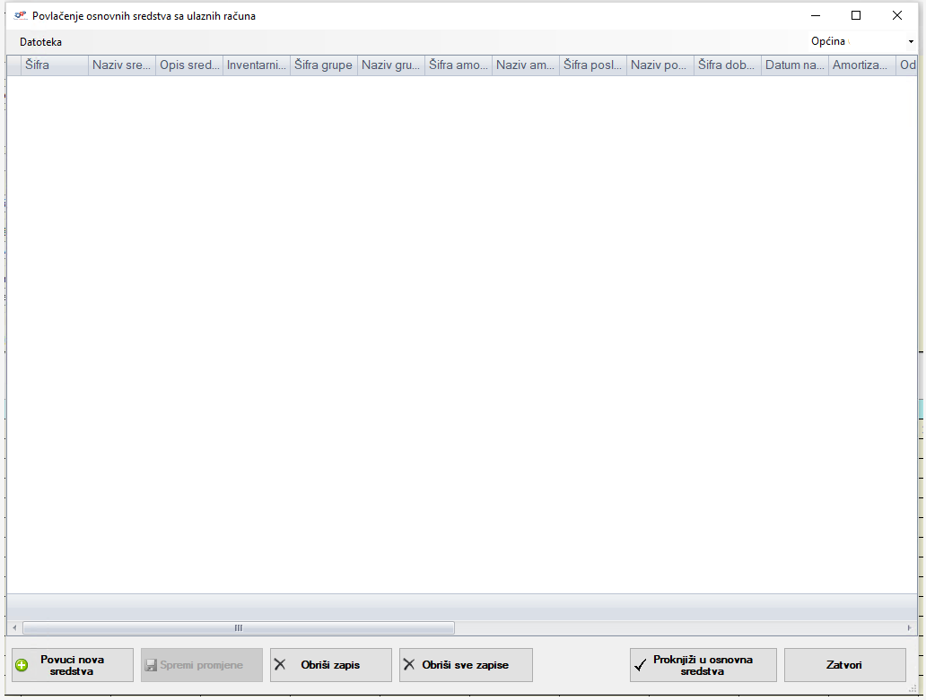 Obriši sve zapise - Klikom na ovu opciju brišu se sva osnovna sredstva koja se nalaze na popisu.