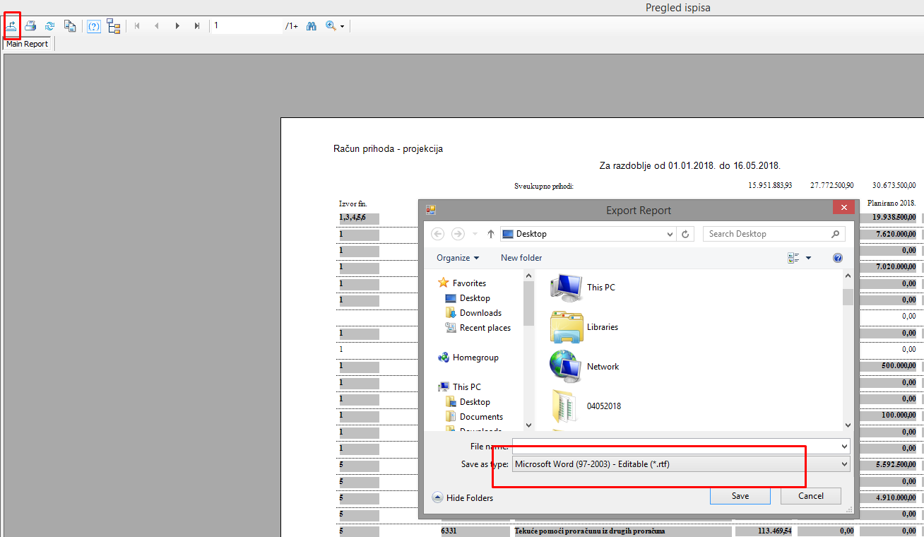 Prilikom spremanja željenog izvještaja potrebno je odabrati .rtf format.