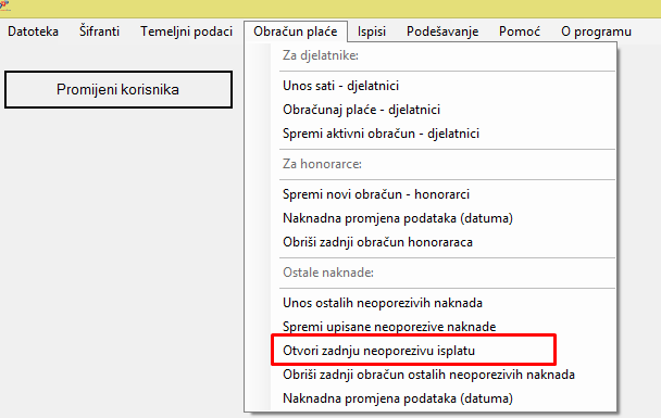 Ta opcija nalazi se u izborniku Obračun plaće -> Otvori zadnju neoporezivu isplatu.
