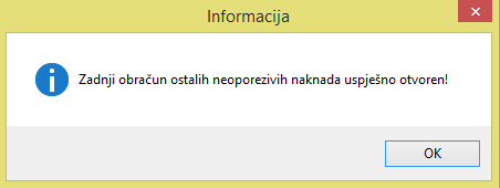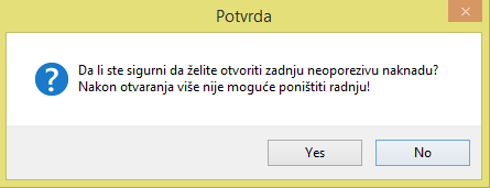 Klikom na nju program pita jeste li sigurni da želite otvoriti zadnju neoporezivu naknadu, te upozorava da naknadno više nije moguće poništiti radnju.