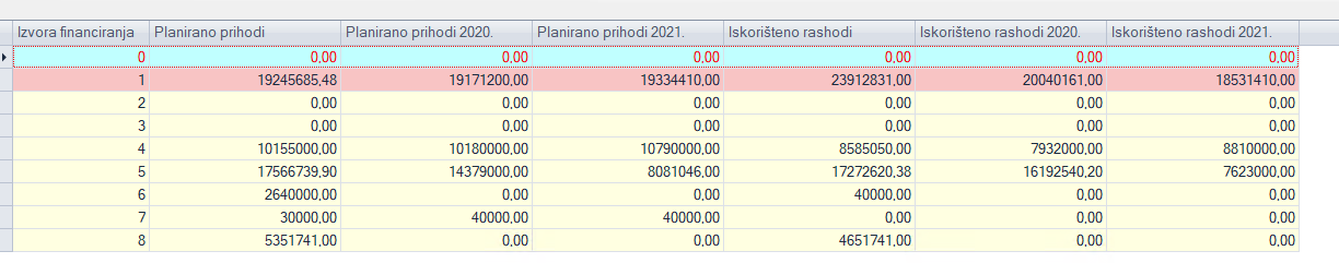 U izborniku Unos plana i projekcije dodana je opcija pomoću koje je moguće pregledati, odnosno usporediti planirani i iskorišteni iznos prihoda i rashoda po izvorima financiranja. Ukoliko su prihodi manji od rashoda, tada se cijeli red označi crvenom bojom.