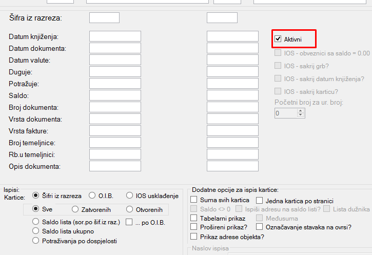 U izborniku Kartice dodana je mogućnost ispisa saldo liste i ostalih izvještaja posebno za aktivne, a posebno za neaktivne obveznike. Do sada ih je bilo moguće ispisati samo sve zajedno.