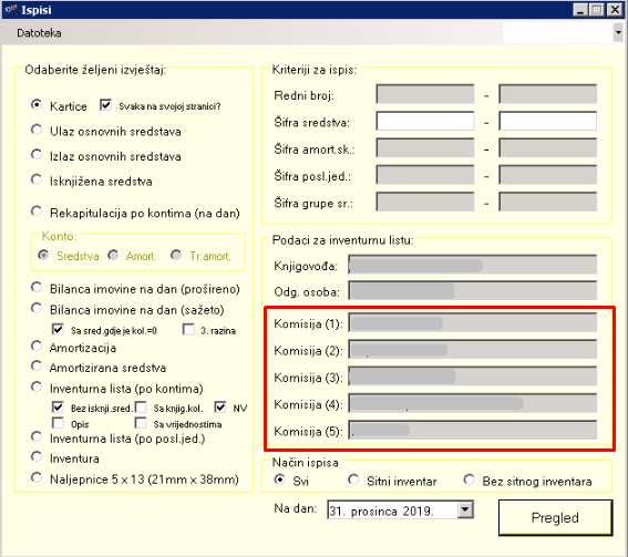 U izborniku Ispisi dodana je mogućnost upisa još dva člana komisije (do sada je bilo moguće upisati 3 člana, a sada je moguće 5). Ti članovi komisije prikazuju se na sažetoj bilanci te na inventurnim listama.