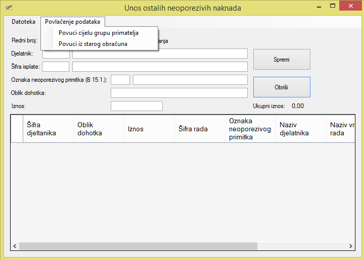 Također, kod Unosa ostalih neoporezivih naknada dodana je mogućnost povlačenja cijele grupe primatelja koja je prethodno kreirana na način koji je prikazan iznad ili povlačenje podataka iz obračuna koji je već napravljen i isplaćen.