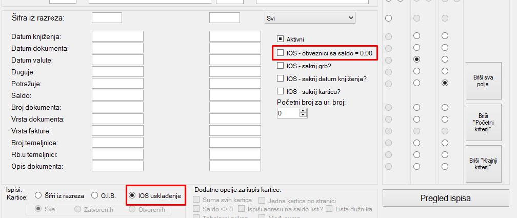 Omogućen je ispis izvještaja IOS usklađenja kada je opcija IOS-obveznici sa saldo=0,00 uključena, odnosno moguće je ispisati obveznike sa saldom 0,00 ali i isključiti njihov ispis ukoliko nije potreban.