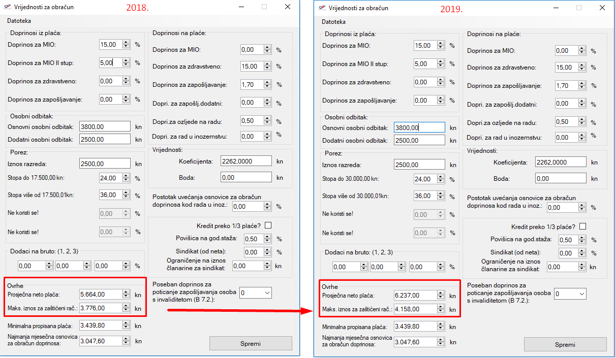 U prozor koji je označen potrebno je upisati iznos za prosječnu neto plaću, a maksimalan iznos koji se može isplatiti na zaštićeni račun upiše se automatski. Na temelju vrijednosti koje su unesene, prilikom obračuna plaće, obračuna se iznos koji je potrebno isplatiti na redovan račun te iznos koji je potrebno isplatiti na zaštićeni račun kod djelatnika.