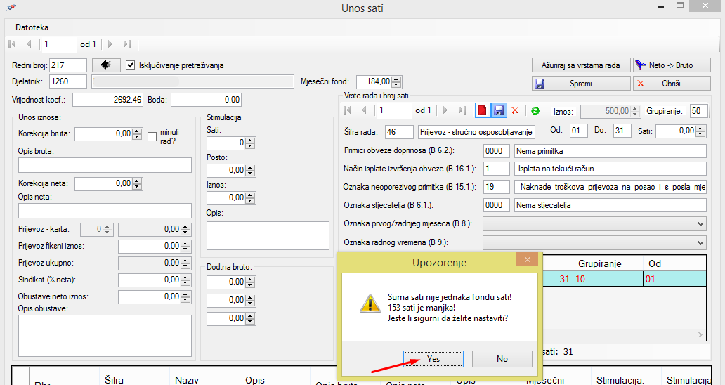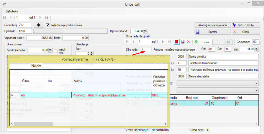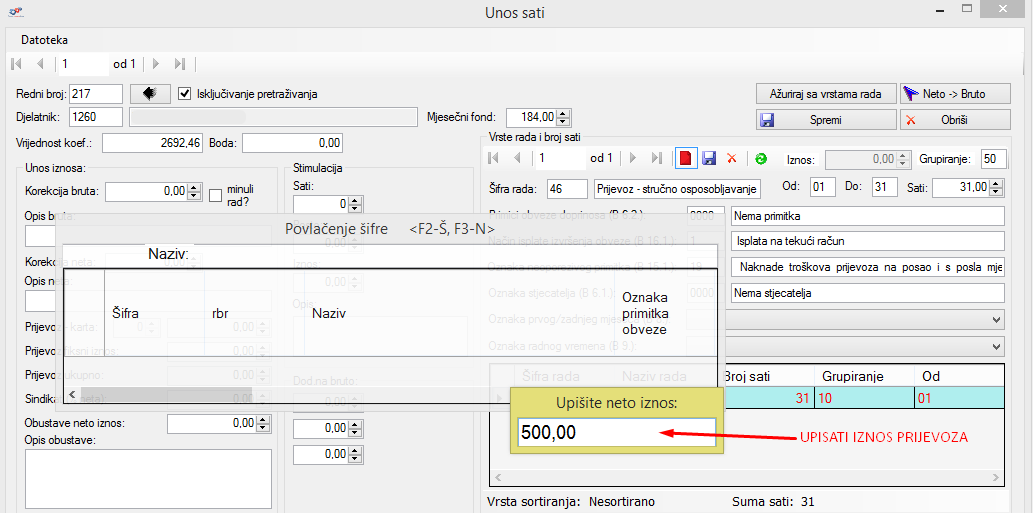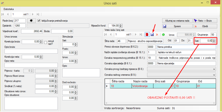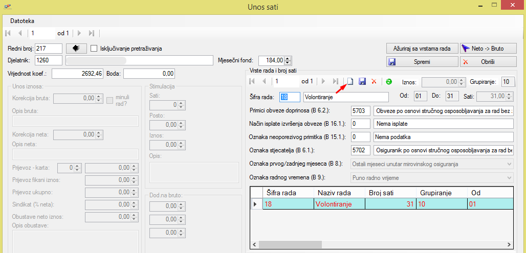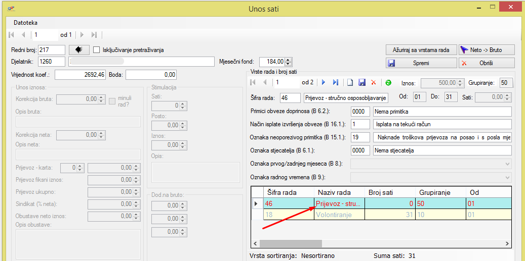 - Dodati kreiranu vrstu rada u izborniku Obračun plaće -> Unos sati - djelatnici osobi na stručnom zapošljavanju na način :