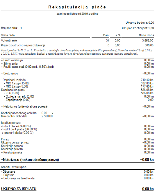 - Potrebno je poduzete sve ostale radnje koje se izvršavaju prilikom isplate plaće (ispis isplatnih listića, virmana, rekapitulacije plaće, JOPPD obrasca).