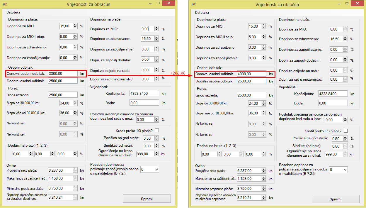 Osnovni osobni odbitak povećava se na 4.000,00 kn, što predstavlja povećanje u ukupnom iznosu od 200,00 kn.