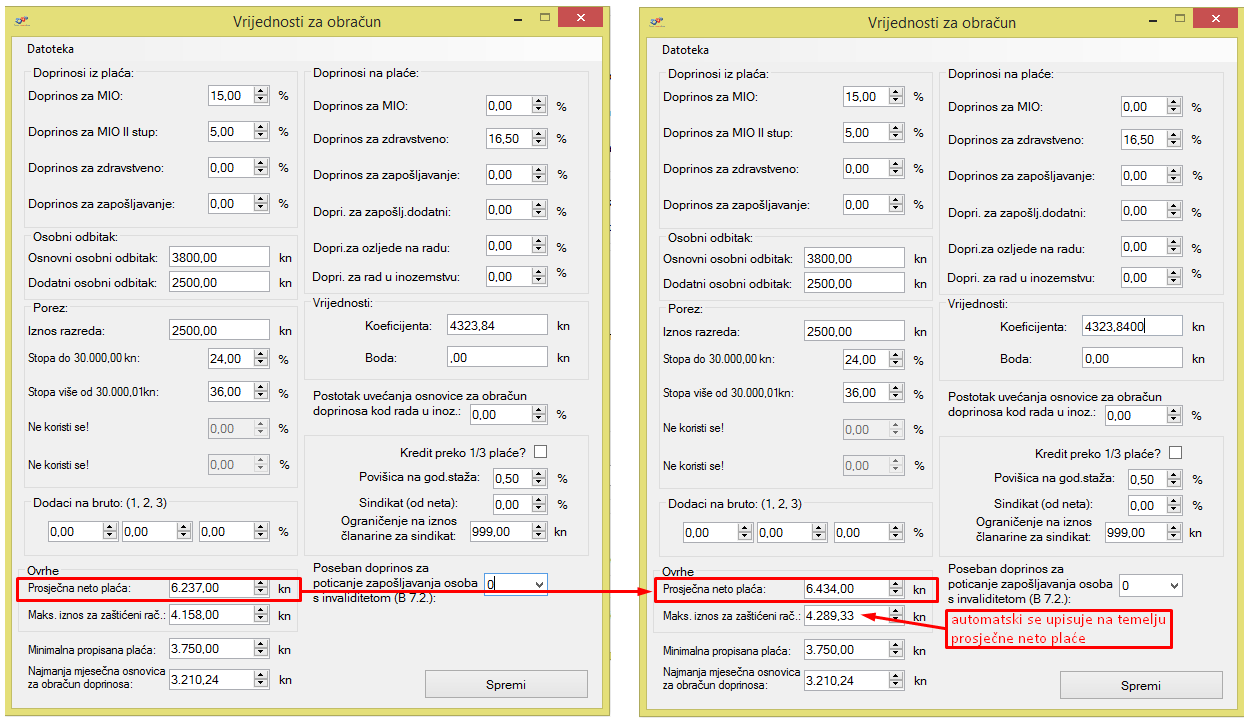 Prilikom upisa novog iznosa prosječne neto plaće, program automatski izračunava i upisuje maksimalni iznos za zaštićeni račun, a koji sada iznosi 4.289,33 kn.