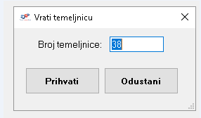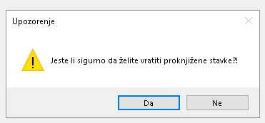 Klikom na Prihvati pojavljuje se prozor sa slike ispod u kojem je potrebno potvrditi vraćanje temeljnice.