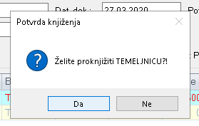 Klikom na Prihvati pojavljuje se prozor sa slike ispod u kojem program traži potvrdu knjiženja te sprema temeljnicu na iznad odabrano mjesto.
