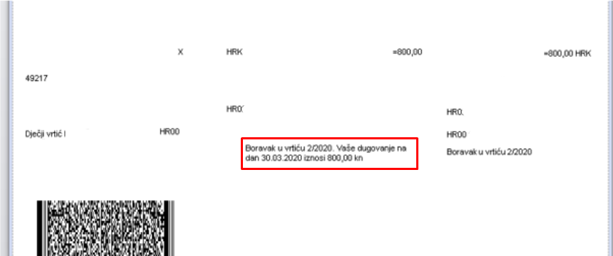 Napravljena je mogućnost ispisa iznosa duga ili preplate(ukoliko saldo kartice nije 0,00 ) na uplatnici za tekući mjesec, u polju opis plaćanja.