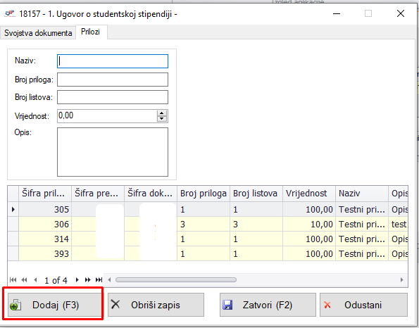Klikom na tu karticu prikažu se već pridruženi prilozi, a isto tako mogu se dodavati novi.