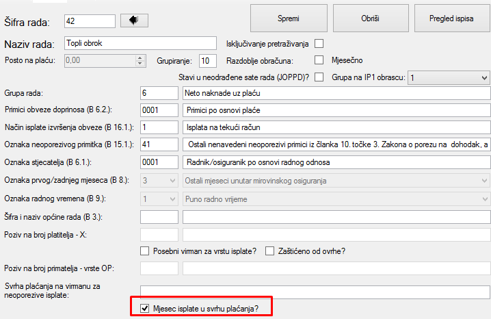 Mogućnost odabira opcije - Mjesec isplate u svrhu plaćanja