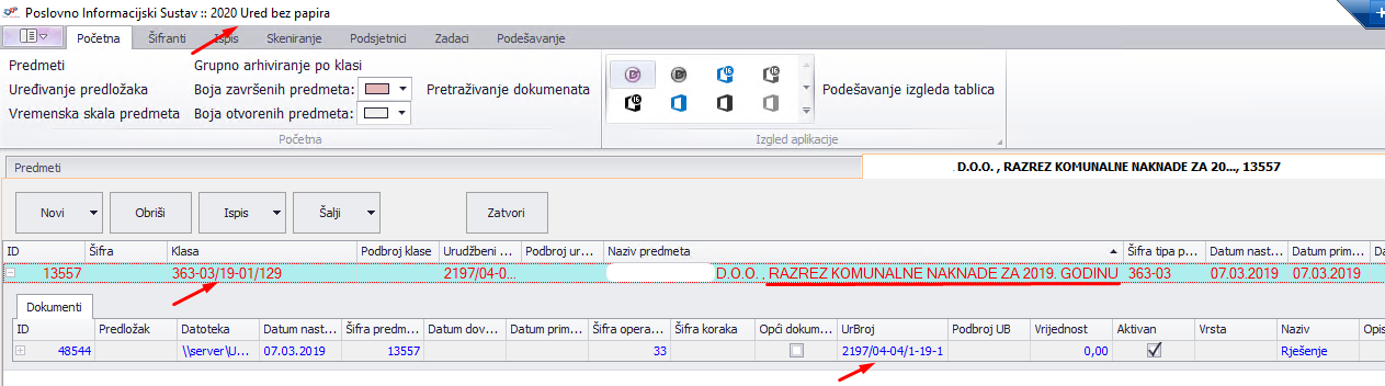 U programu Komunalna naknada omogućen je prijenos Rješenja automatski u program Ured bez papira, odnosno automatsko urudžbiranje Rješenja.