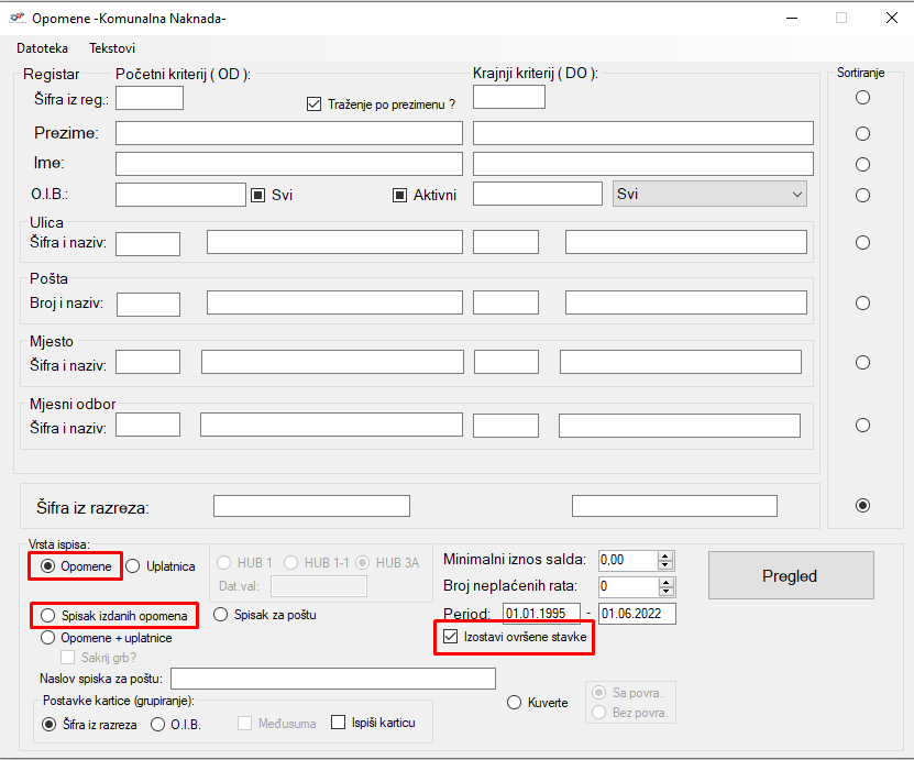 - Dodana je opcija za izostavljanje ovršenih stavaka kod kreiranja opomene
