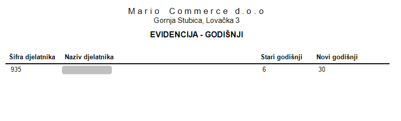 - Dodan izvještaj "Evidencija - godišnji odmor"