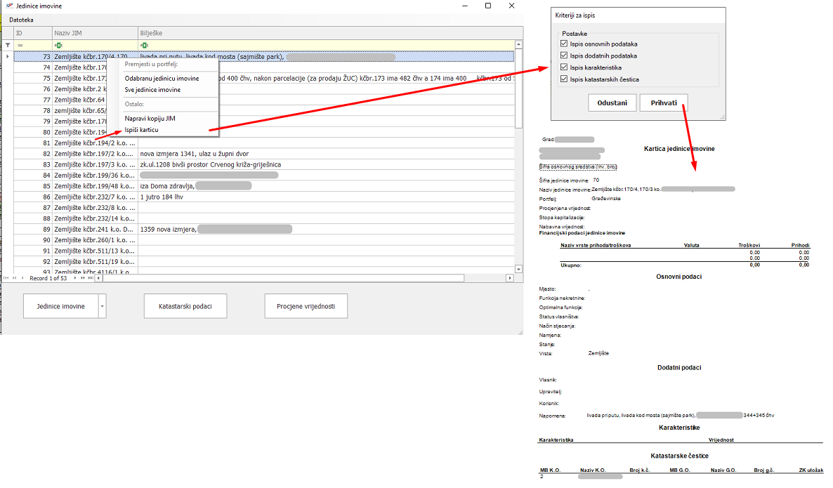 - Dodana je mogućnost ispisa kartice JIM korištenjem desnog klika miša na navedenu jedinicu imovine
