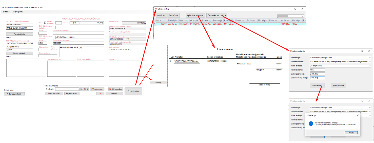 - Dodana je mogućnost kreiranja zbrojnog naloga(datoteke za banku)