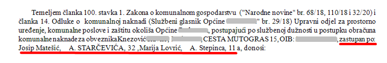 Za sve obveznike koji u Registru imaju upisanu ovlaštenu osobu za zastupanje (objašnjeno u nadogradnjama za Registar niže u članku), omogućeno je ispisivanje ovlaštene osobe u bilo koji dio Rješenja, sa podacima po izboru (npr. naziv i OIB, ulica i kbr.).