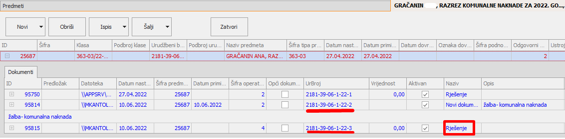 - takvo rješenje možemo pregledati, napraviti kompletnu obradu gdje će se urudžbirati u UBP ili izbrisati