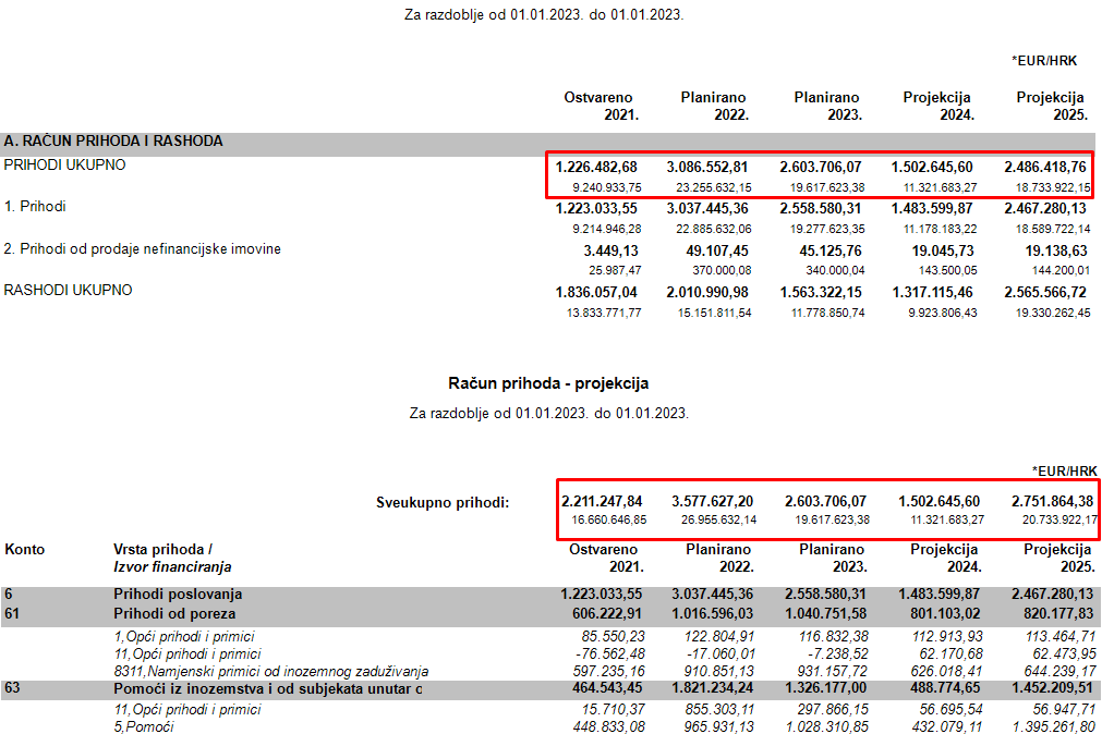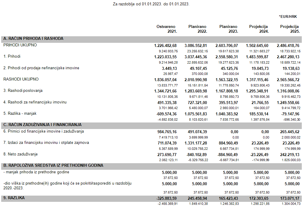Sukladno novim odredbama Zakona o Proračunu (NN 144/21) i Uputama Ministarstva financija Republike Hrvatske za izradu proračuna JLP(R)S za razdoblje 2023. - 2025. napravljene su izmjene u programu Proračun.