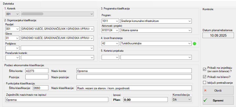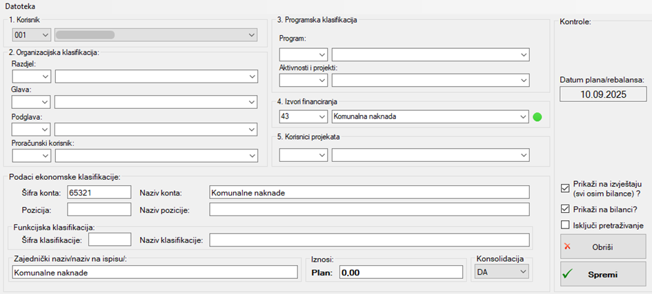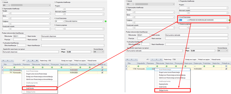 Obratite pažnju na konta koja na sebi imaju knjiženje u razdoblju 2024. – 2025. godine i/ili planirani iznos u 2025.godini. Takvim kontima se ne smiju mijenjati izvori financiranja iz razloga što se tada neće poklapati s objavljenim podacima za 2024. i 2025. godinu. Takva konta je potrebno otvoriti ponovno s novim izvorom financiranja.