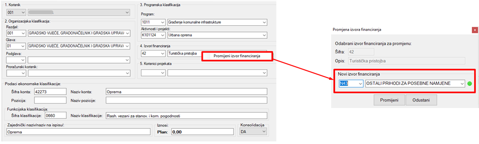- PROMJENA IZVORA FINANCIRANJA NA POSTOJEĆEM KONTU