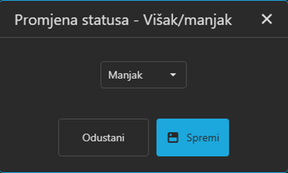 Kod segmenta: „Višak/manjak“ moguće je mijenjati podatak o višku/manjku u slučaju da nacrt nije proknjižen i da trenutni korisnik nije glavni.