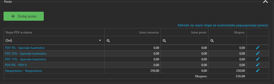 - Automatsko popunjavanje poreza nakon unosa iznosa za plaćanje(troška plaće)