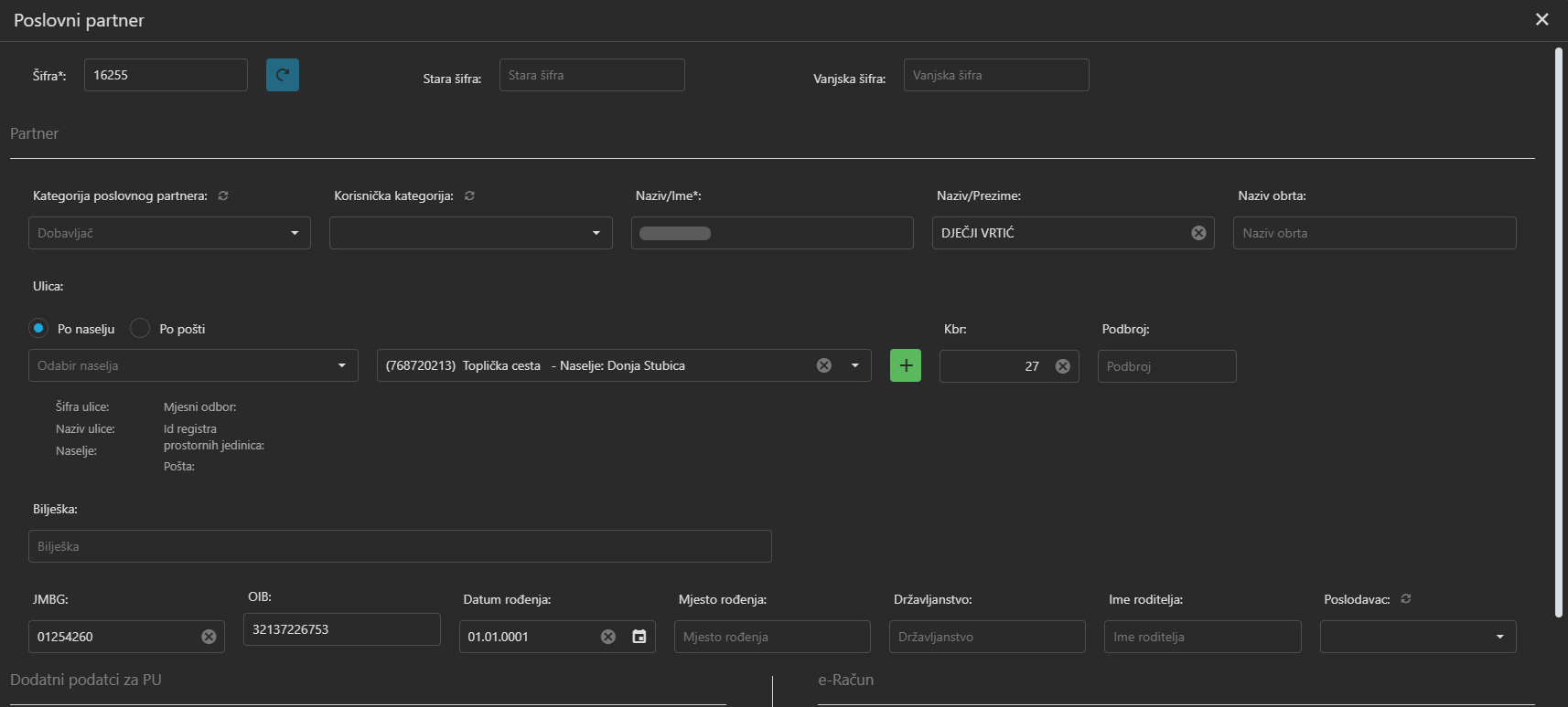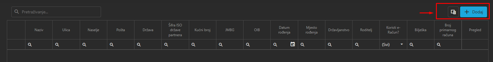 - Dodavanje novog poslovnog partnera - opcija Dodaj