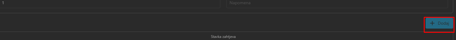 U drugoj cjelini prozora nalazi se lista svih stavki zahtjeva. Novu stavku moguće je dodati klikom na gumb: „Dodaj“ s desne strane prozora.
