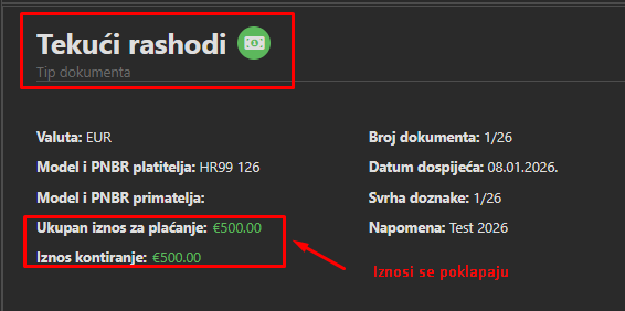 - Stavka zahtjeva za plaćanje - Iznosi se poklapaju