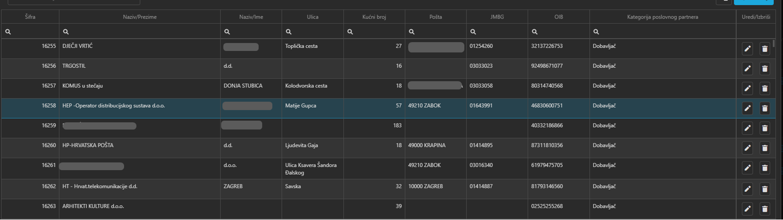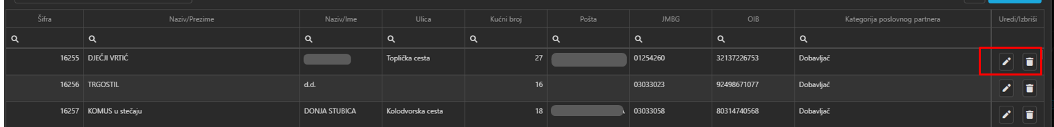 U slučaju potrebe za uređivanjem nekog podatka na Dobavljačima klikne se na ikonicu Olovke. a ikona pokraj briše zapis.
